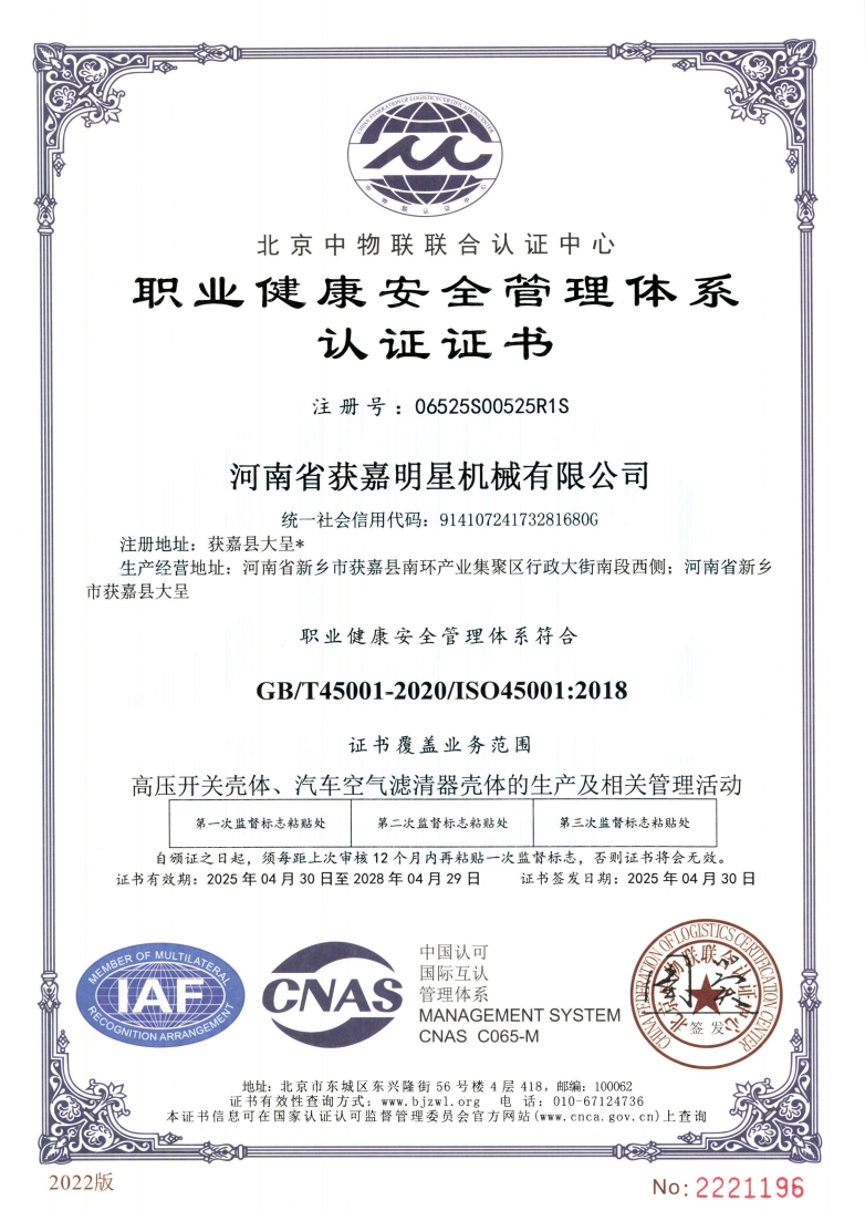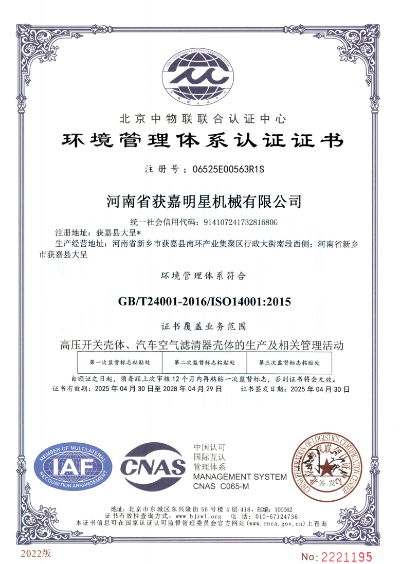 明星机械作为行业品牌,产品涉及高压开关、汽车配件、医疗设备、环保设备等多个领域。公司技术力量雄厚,拥有健全的质量管理体系,获得ISO9001:2015质量管理体系认证,凭借优异的产品质量,**的服务精神,在市场上取得不凡的业绩,获得客户广泛认可和赞誉。公司秉承“立足于诚信求发展,执着于**为客户”的经营理念,以“专注品质,用心服务”为核心价值,一切以用户需求为中心,欢迎各界朋友莅临参观、指导和业务洽谈。